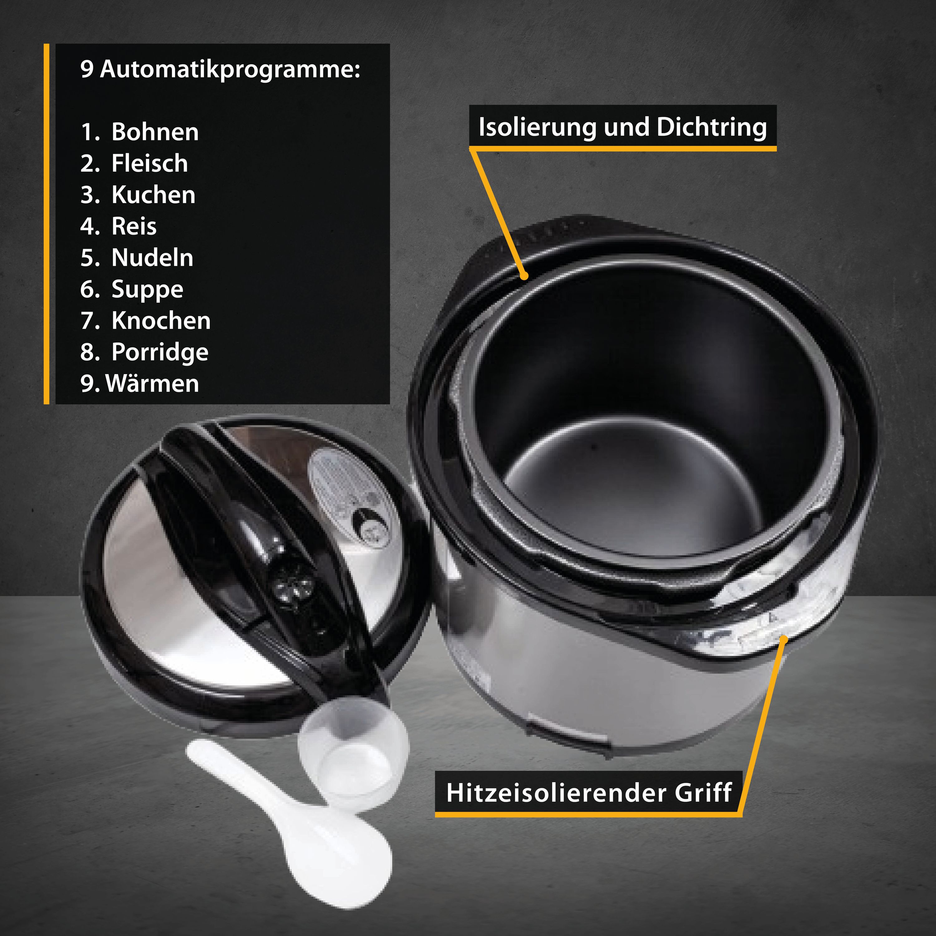 - 1x elektrischer Schnellkochtopf / Druckkochtopf inkl. Löffel und Messbecher von TZS First Austria