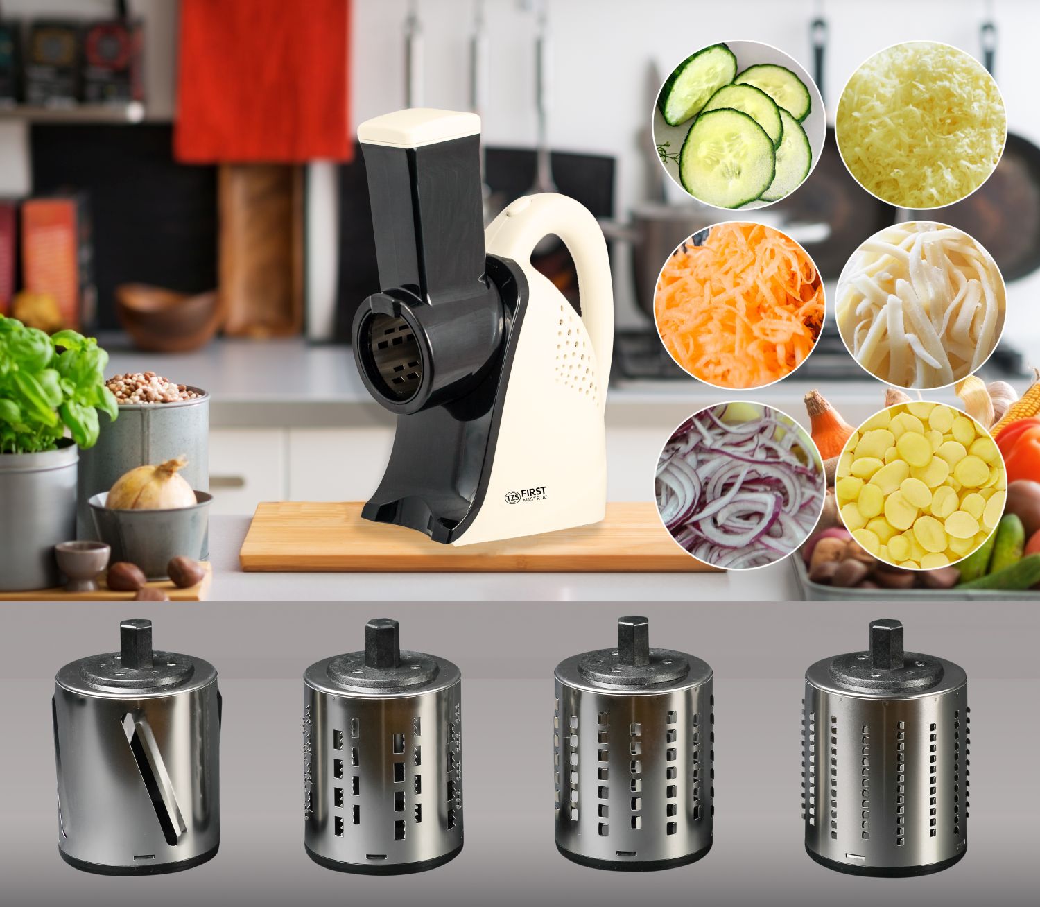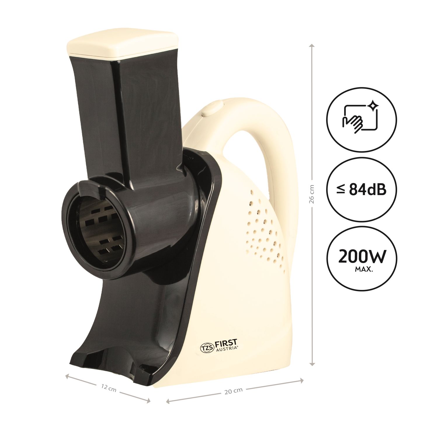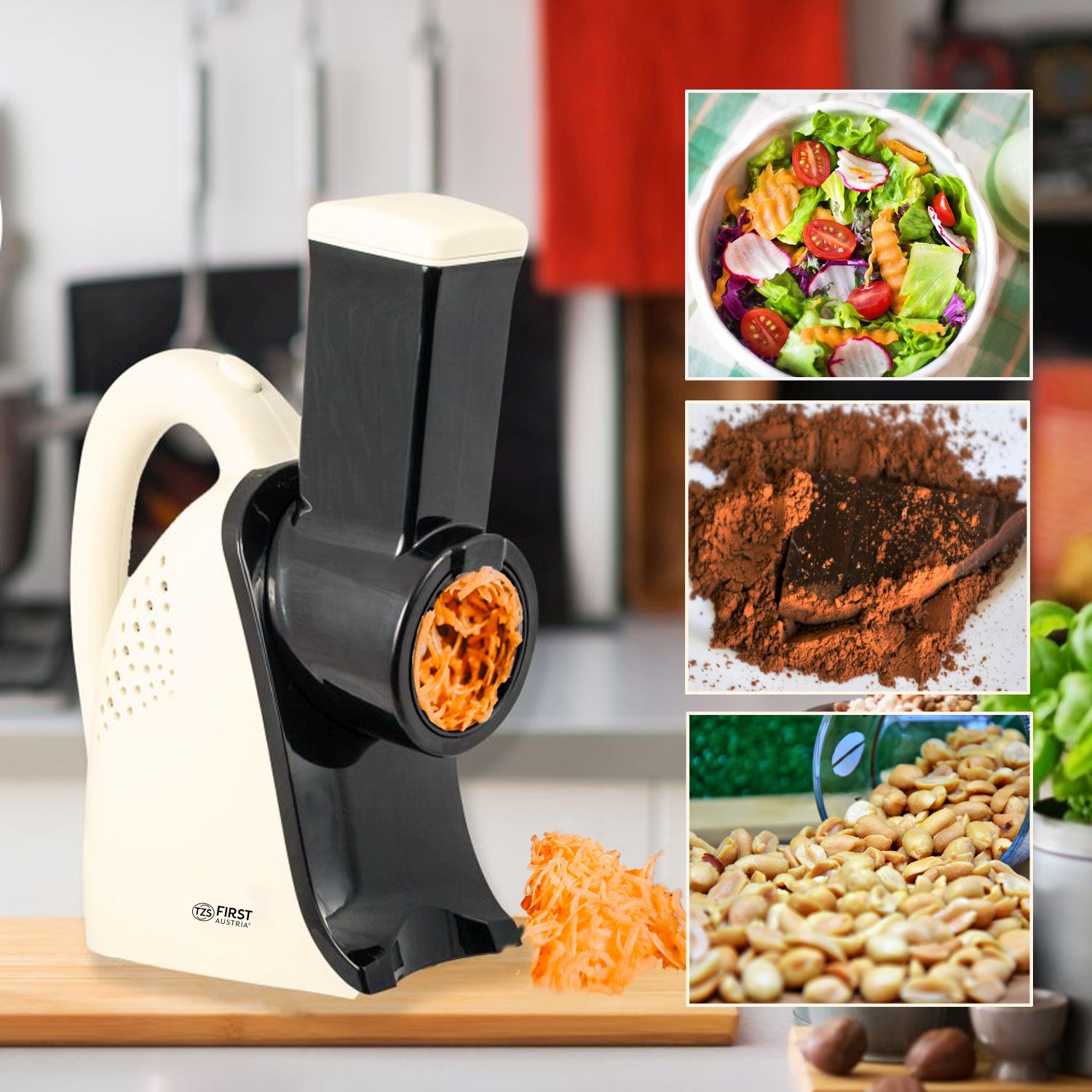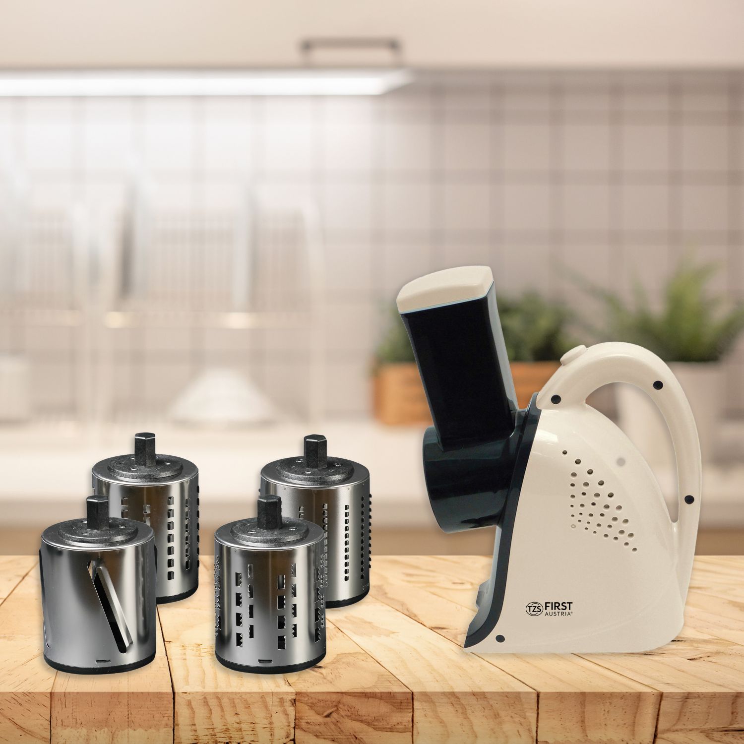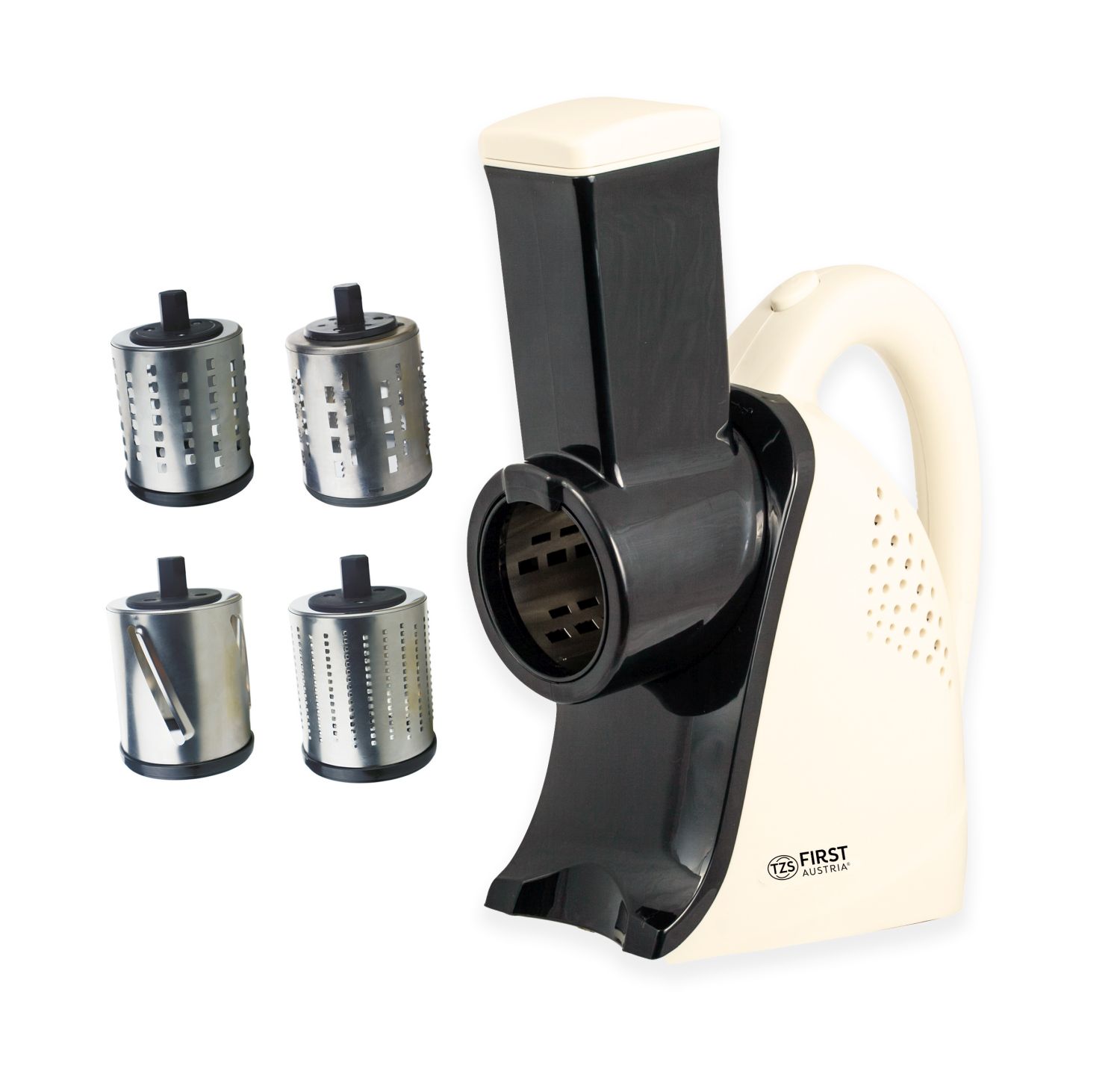 TZS First Austria Raspel, elektrischer Gemüsehobel mit vier Trommel-Einsätzen, 200 W