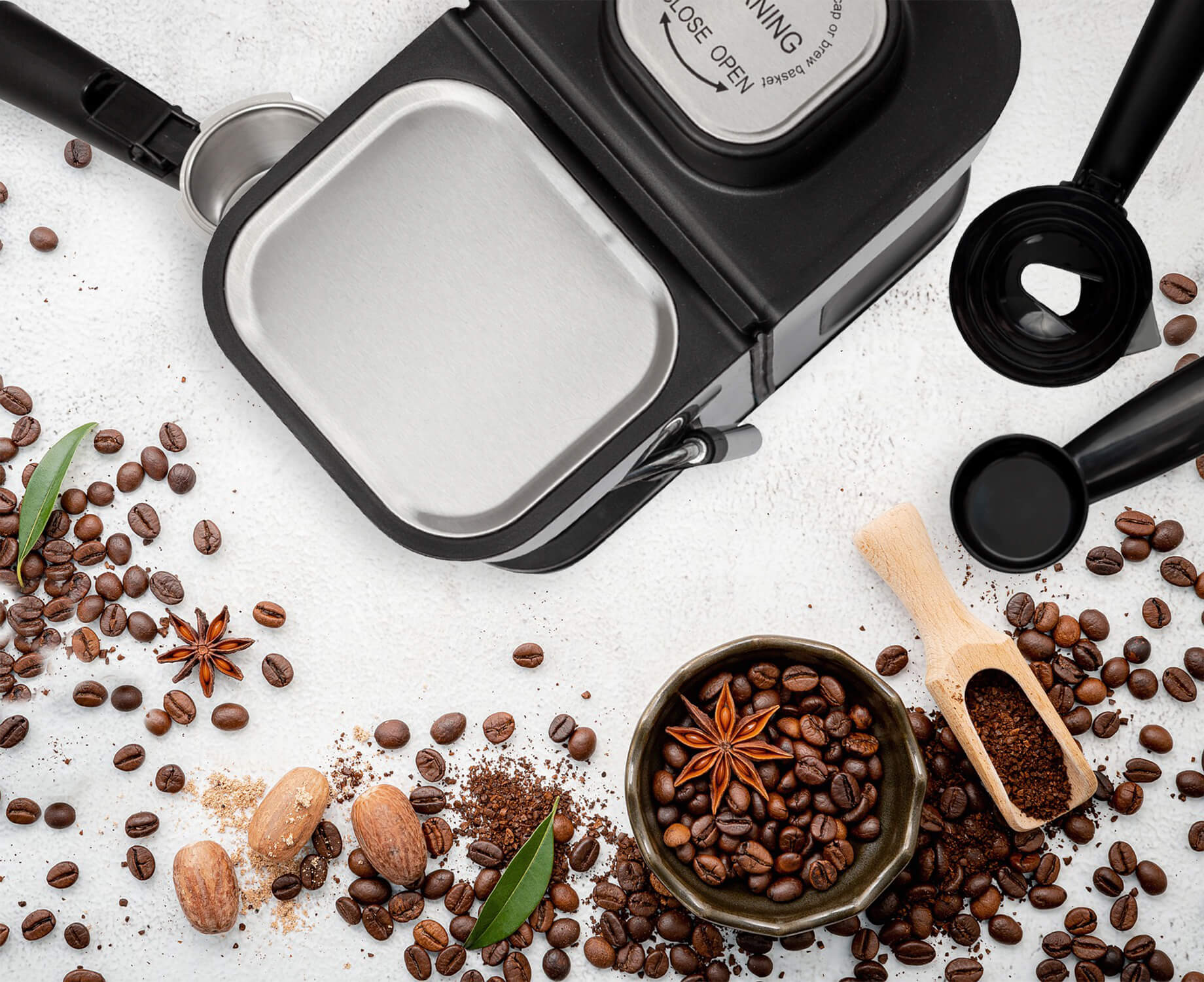 1 x Espressomaschine, kleine Kaffeemaschine zum Zubereiten von Espresso, Milchkaffee + Kaffee Crema von TZS First Austria.