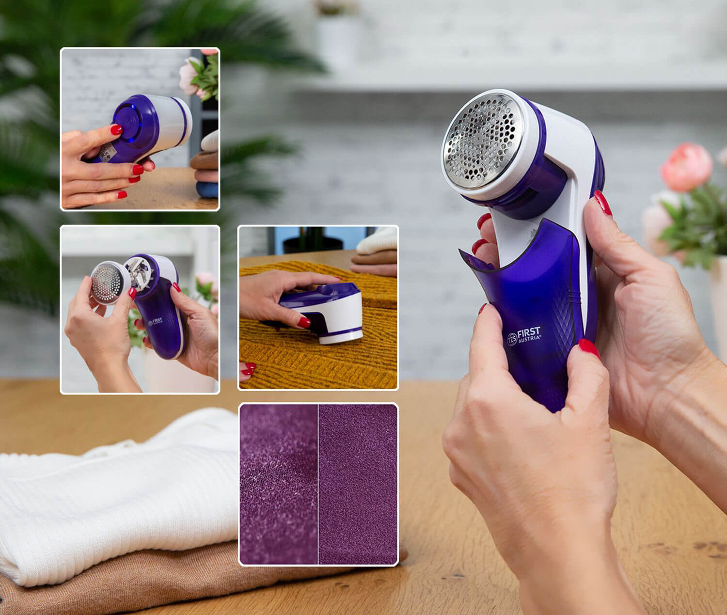 Gründlich, schonend und schnell arbeitet der solide Flusenentferner mit drei scharfen Klingen. Konzipiert für den effizienten Gebrauch auf Textilien aller Art, lassen sich dank großzügiger Klingenoberfläche kleine oder mittlere Kleidungsstücke ebenso behandeln wie Decken, Kissen oder Überwürfe. Sogar Polstermöbel und Autositze sehen nach einer erfolgreichen Fusselrasur wieder schön gepflegt aus und fühlen sich angenehm glatt an. Der positive Nebeneffekt: Das Gerät entfernt auch gleich andere Störfaktoren wie Tierhaare, Staubflecken und Schuppen. Aus robustem Kunststoff mit abnehmbarem Auffangbehälter gefertigt und leise im Betrieb. Ideal auch für die Reise. Inklusive Ladekabel.