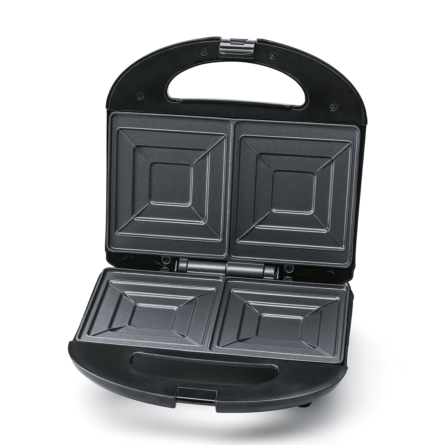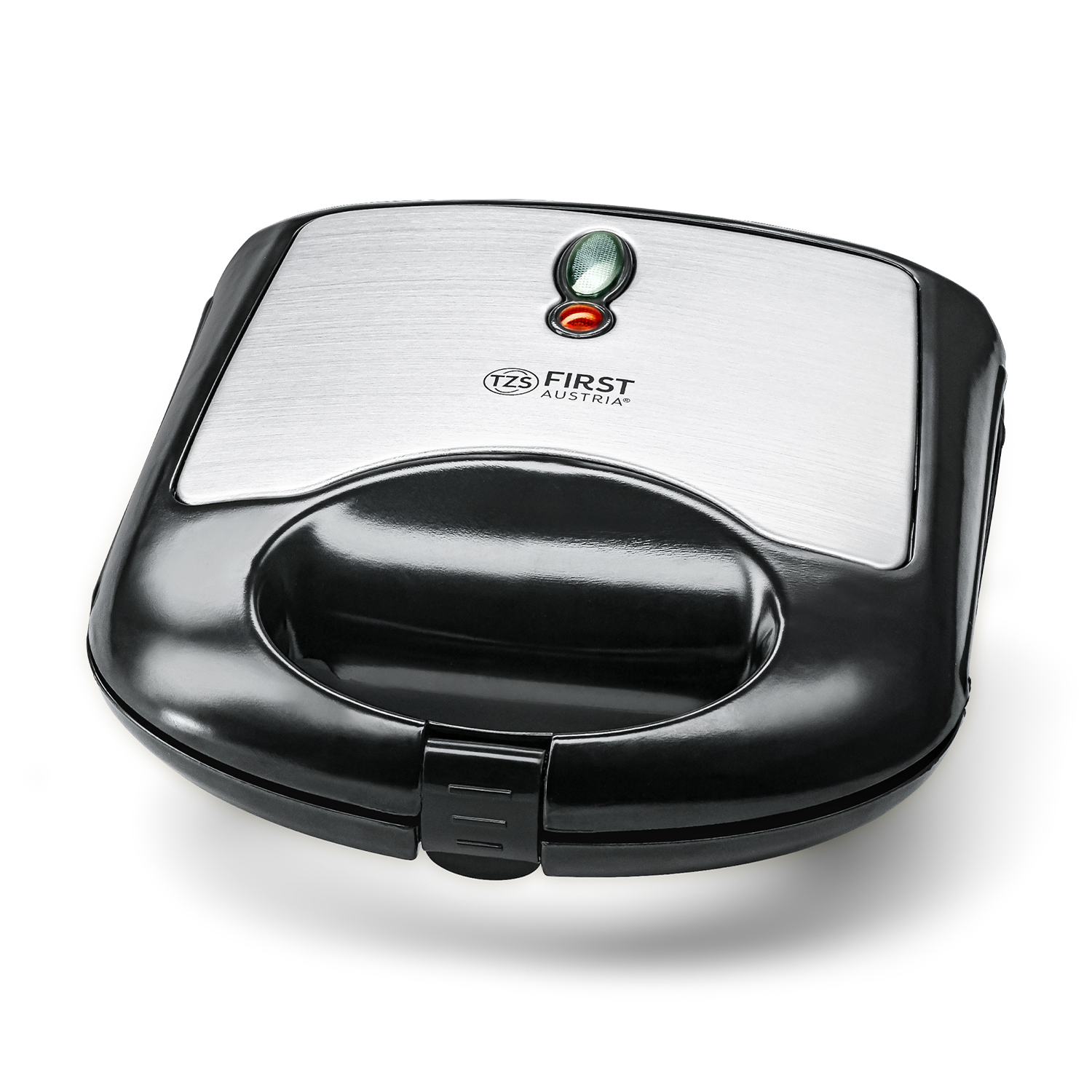 Außen knusprig, innen saftig: Herzhafte Dreiecktoasts als feines Fingerfood. Mit seinen speziell ausgeformten Antihaft-Platten teilt der Sandwichmaker Toasts in Standardgröße. Die Füllung wird im Brot versiegelt. Nichts kann mehr herausquellen oder tropfen. So eignen sich die bis zu 5mm dicken Sandwiches perfekt als Fingerfood. Nach Gebrauch ist der Sandwichmaker leicht zu reinigen. Das abgerundete Design mit feiner Edelstahlverblendung passt in jede Küche. Dank der kompakten Maße ist das Gerät auch einfach zu verstauen. Ausgestattet mit hitzeisoliertem Sperrgriff und Kontrollleuchte.
