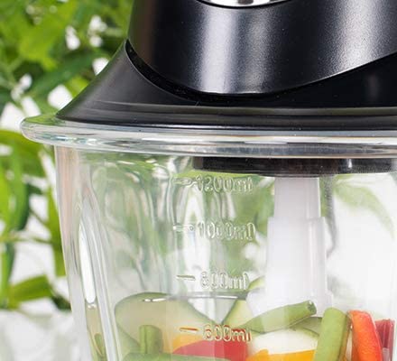 Der elektrische Universalzerkleinerer ist ein kraftvoller Helfer, der Lebensmittel sowohl zerkleinert, schneidet, mixt als auch püriert. Der Mixer eignet sich zum Kochen und Backen abwechslungsreicher Gerichte und schneidet Kräuter für Salat, zerkleinert Nüsse und verwandelt Früchte in gesunde Smoothies. Mit einer Leistung von 500 Watt und vier Edelstahl-Messern, werden alle Zutaten präzise geschnitten und in dem 1,2 L großen Glasbehälter aufgefangen. Das moderne Design sowie die handliche Größe machen die leistungsstarke Küchenmaschine in jeder Küche unverzichtbar.