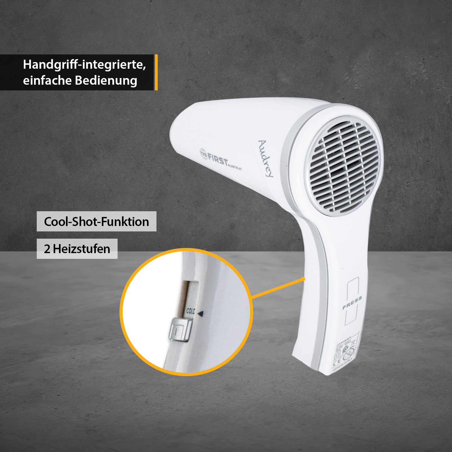Trotz seiner kompakten Größe steckt in ihm echte Power: 1200 Watt, 2 Temperatureinstellungen, 1 Geschwindigkeitsstufe und eine Kühlfunktion für das perfekte Styling-Finish. Die Thermosicherung sorgt für zusätzlichen Schutz, während die Geräuschemission mit nur 80 dB(A) angenehm leise bleibt.