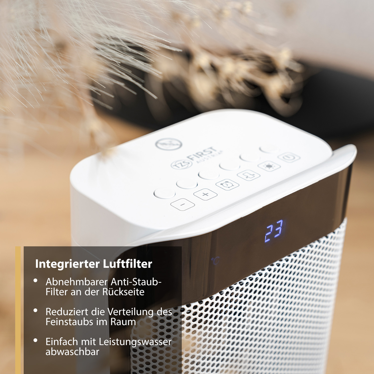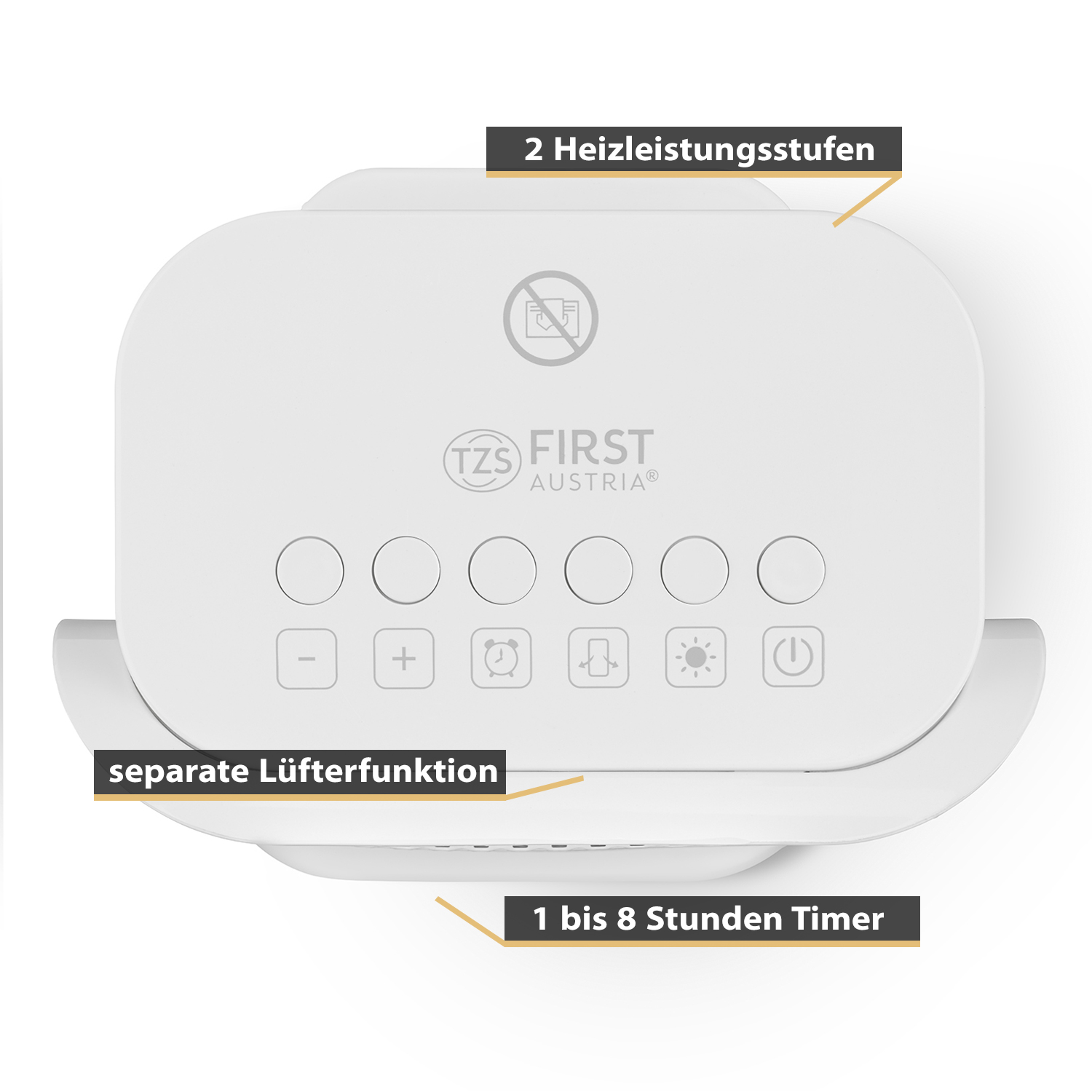 - 2 Heizstufen (1400/2000 W) und reine Ventilatorfunktion