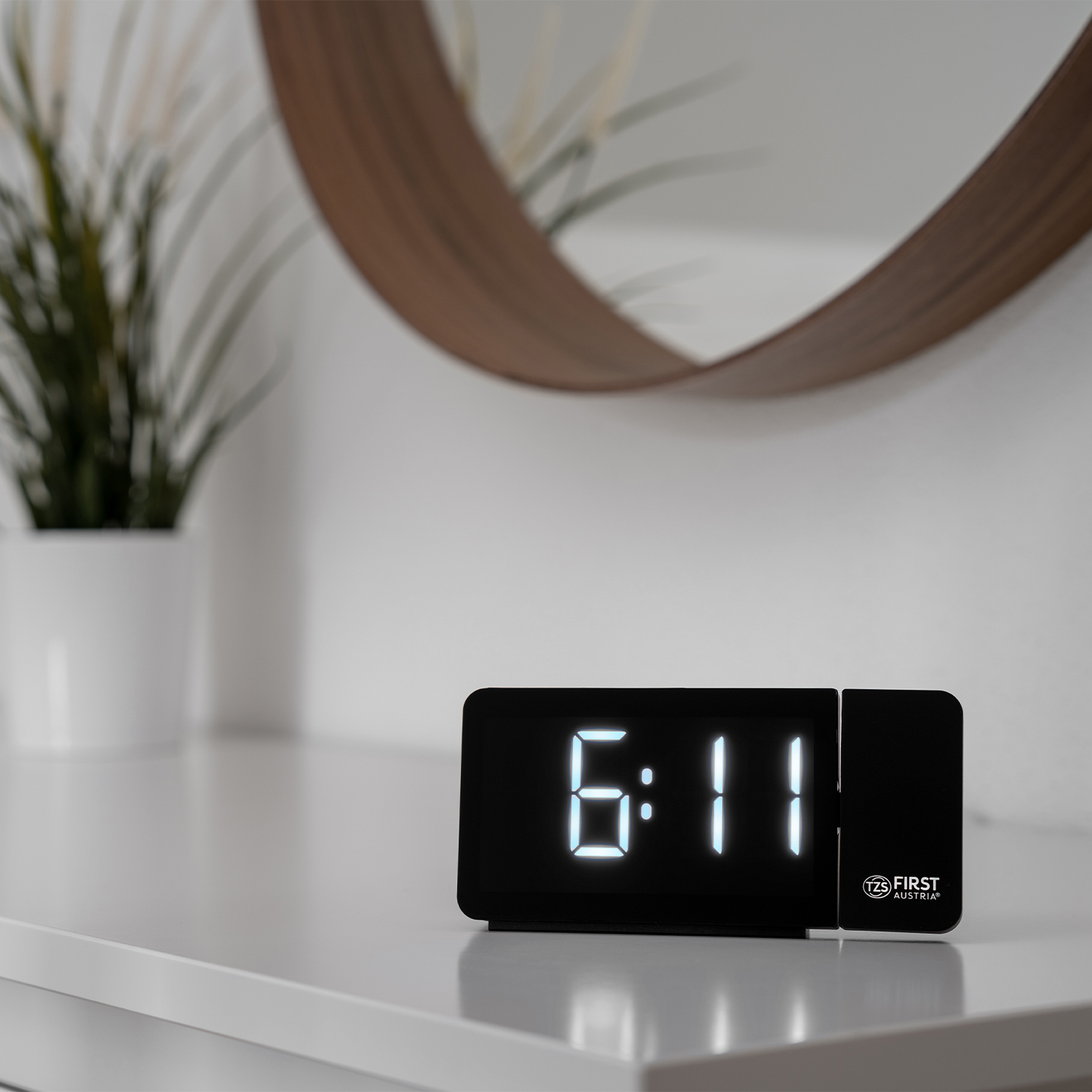 - Uhrzeitprojektion mit einstellbarem Betrachtungswinkel und Helligkeit