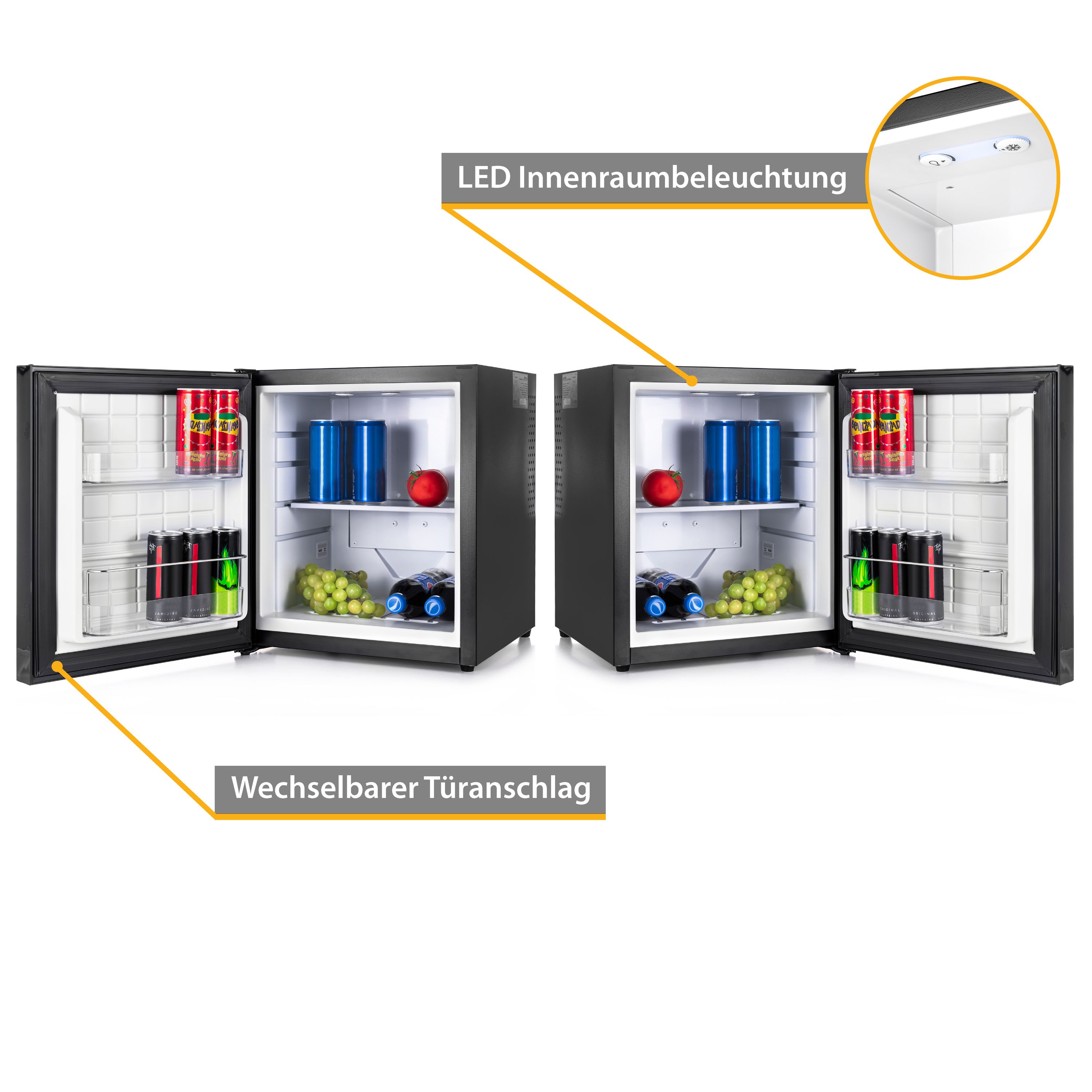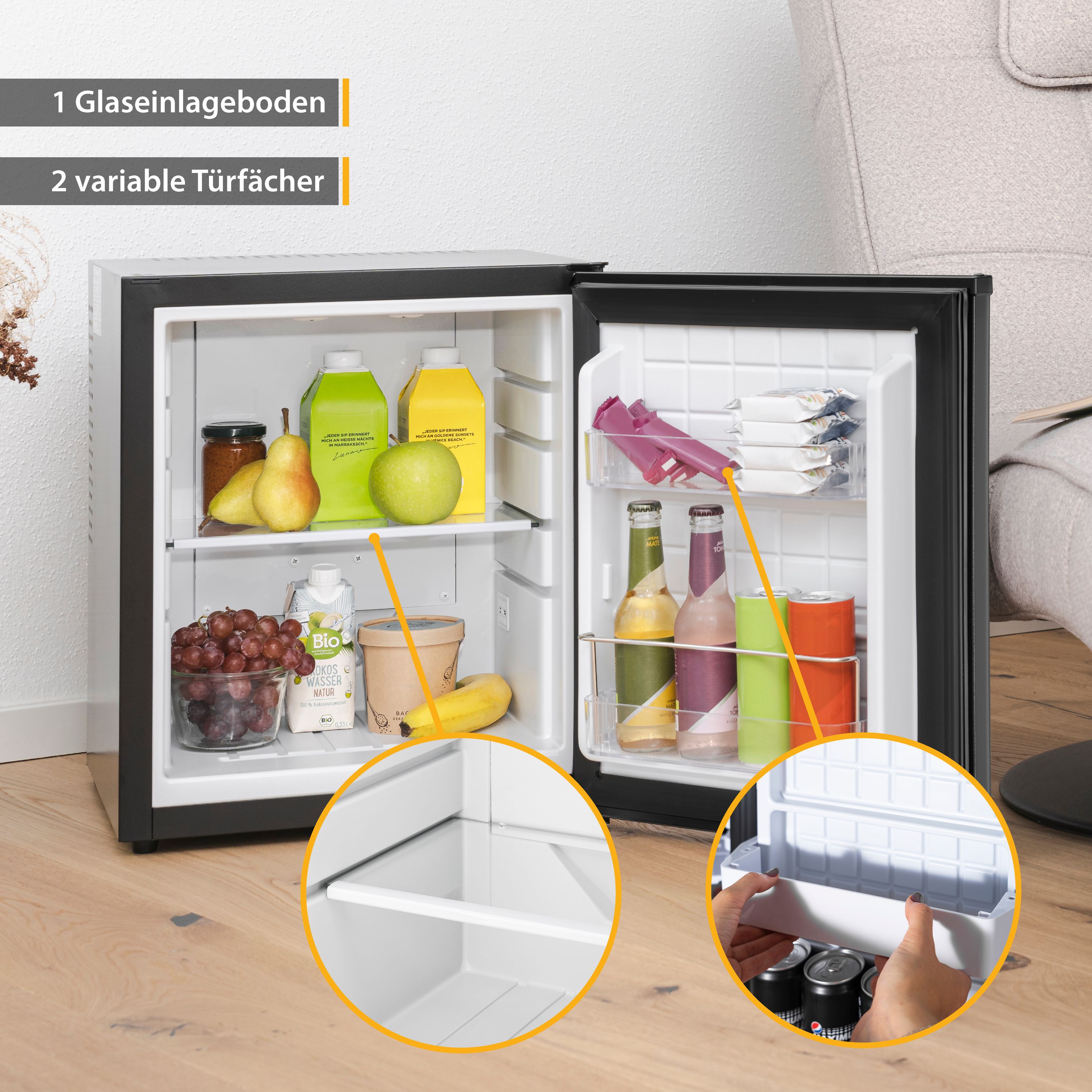Absolut lautlos dank Peltier-Kühltechnik: Dieser schlichte Minikühlschrank mit stromsparender LED-Innenbeleuchtung und schmutzunempfindlicher Oberfläche ist ein stiller Alltagshelfer. Mit einer Höhe von nur 56,5 cm eignet er sich perfekt zum Aufstellen in kleineren Räumen (Schlafzimmer, kleine Wohnungen, Studenten Zimmer, Büro, Hotel Zimmer, Ferienwohnung, Camping).