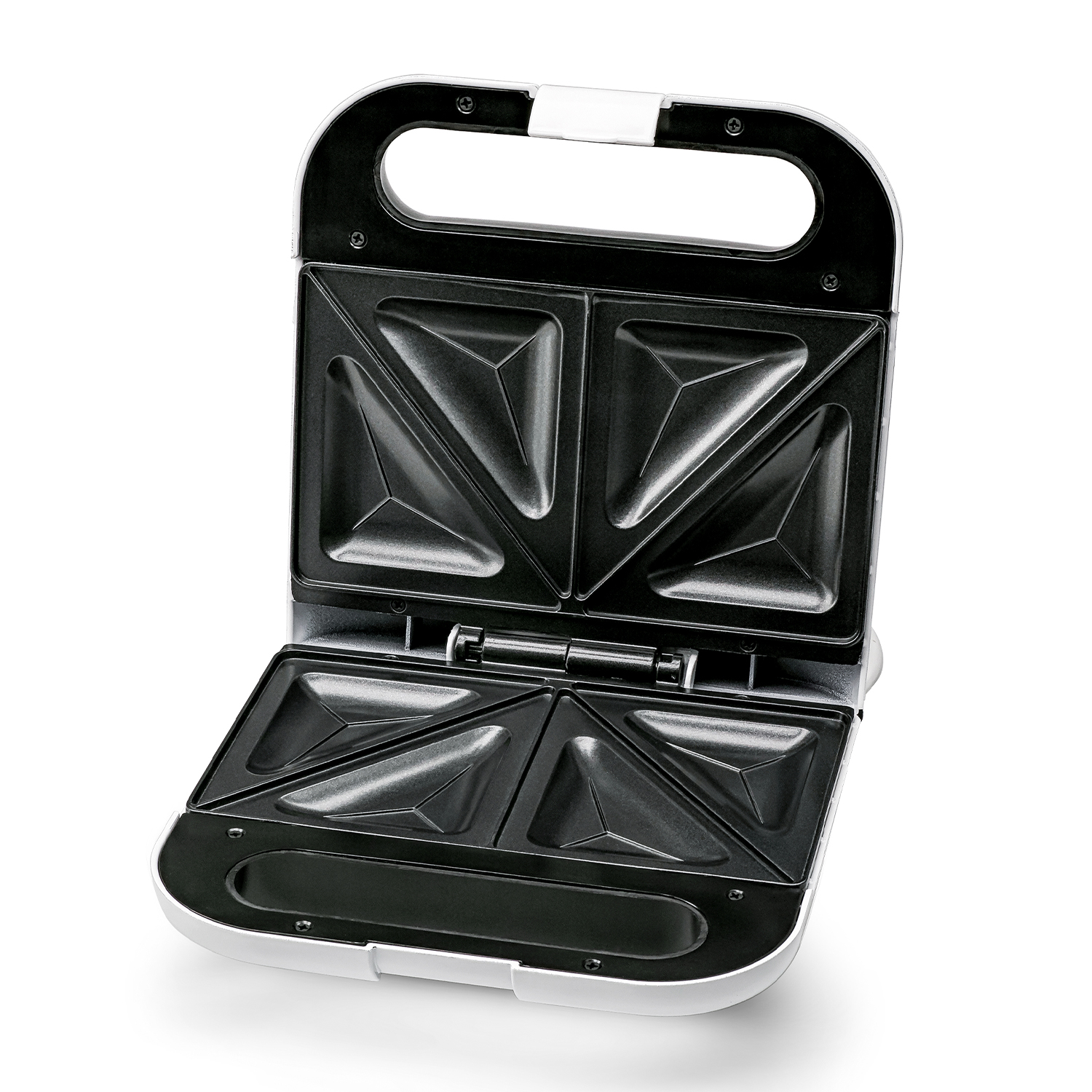 Der ultrakompakte Sandwich Maker arbeitet überall. Nehmen Sie ihn mit zum Campen, in die Ferienwohnung oder als Zusatzgerät auf Partys. Dank seiner speziell ausgeformten Antihaft-Platten teilt und versiegelt der Sandwich Maker Toasts in Standardgröße. Die Füllung kann nicht herausquellen oder tropfen. Sie genießen Ihr Sandwich mit sauberen Händen und fleckenloser Kleidung.