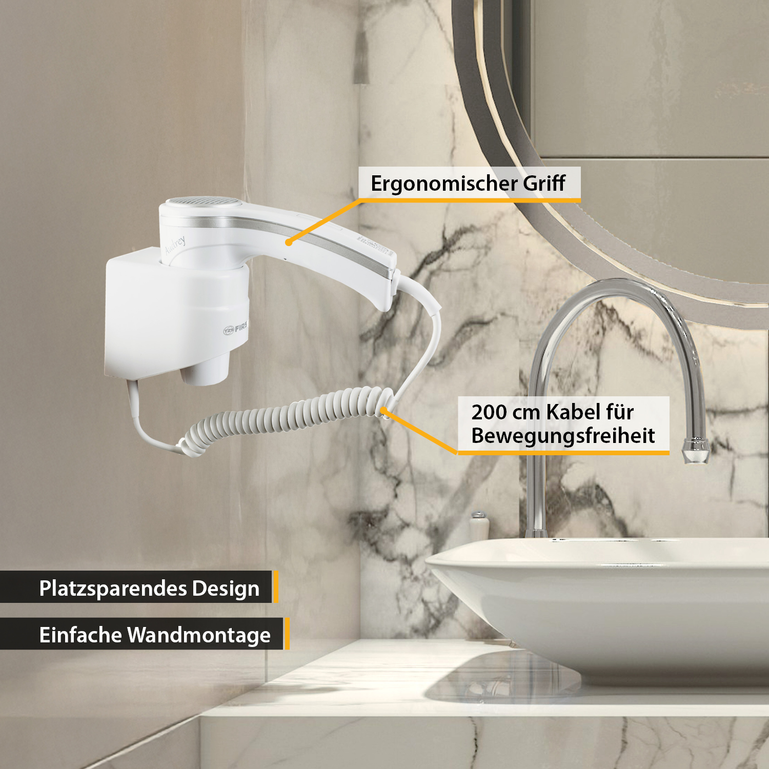 Dieser Fön ist ideal für alle, die eine praktische, fest installierte Lösung suchen und gleichzeitig auf Leistung und Design nicht verzichten möchten!