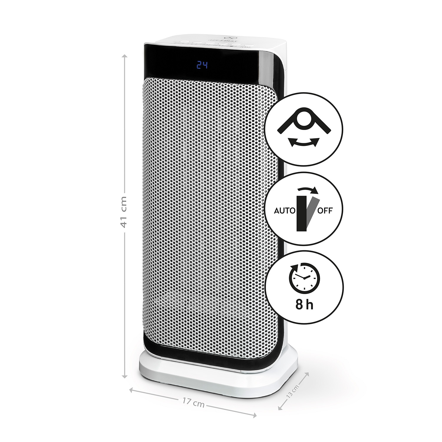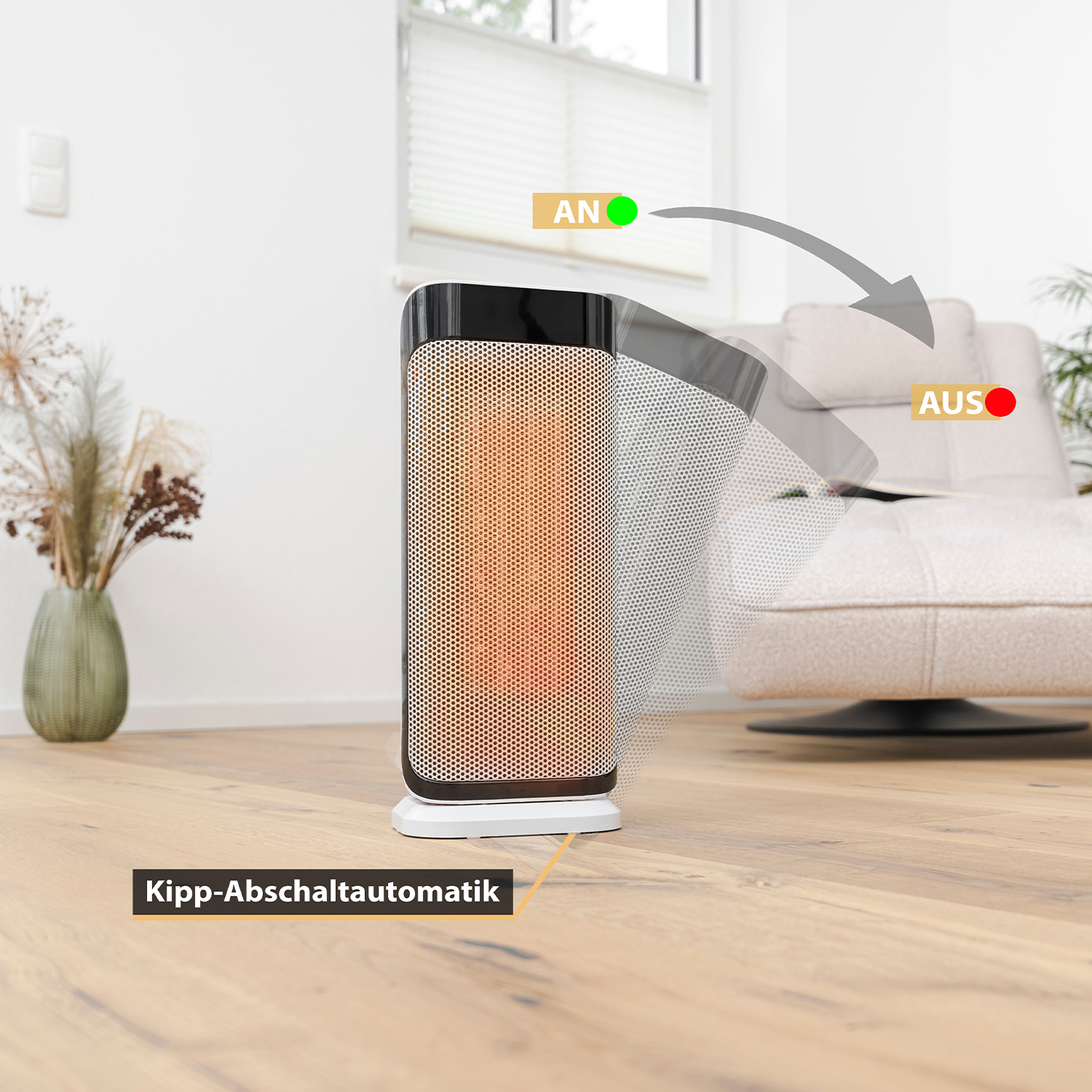 - 2 Heizstufen (1400/2000 W) und reine Ventilatorfunktion