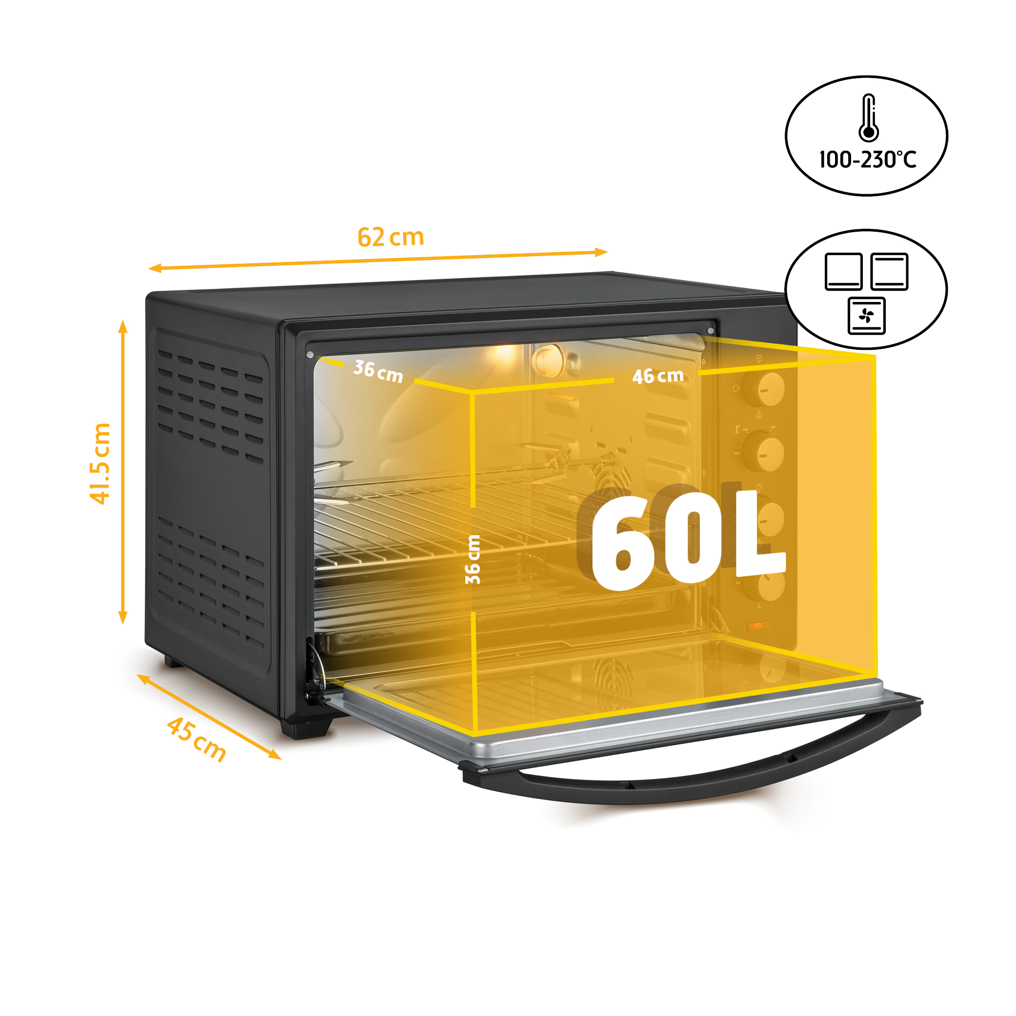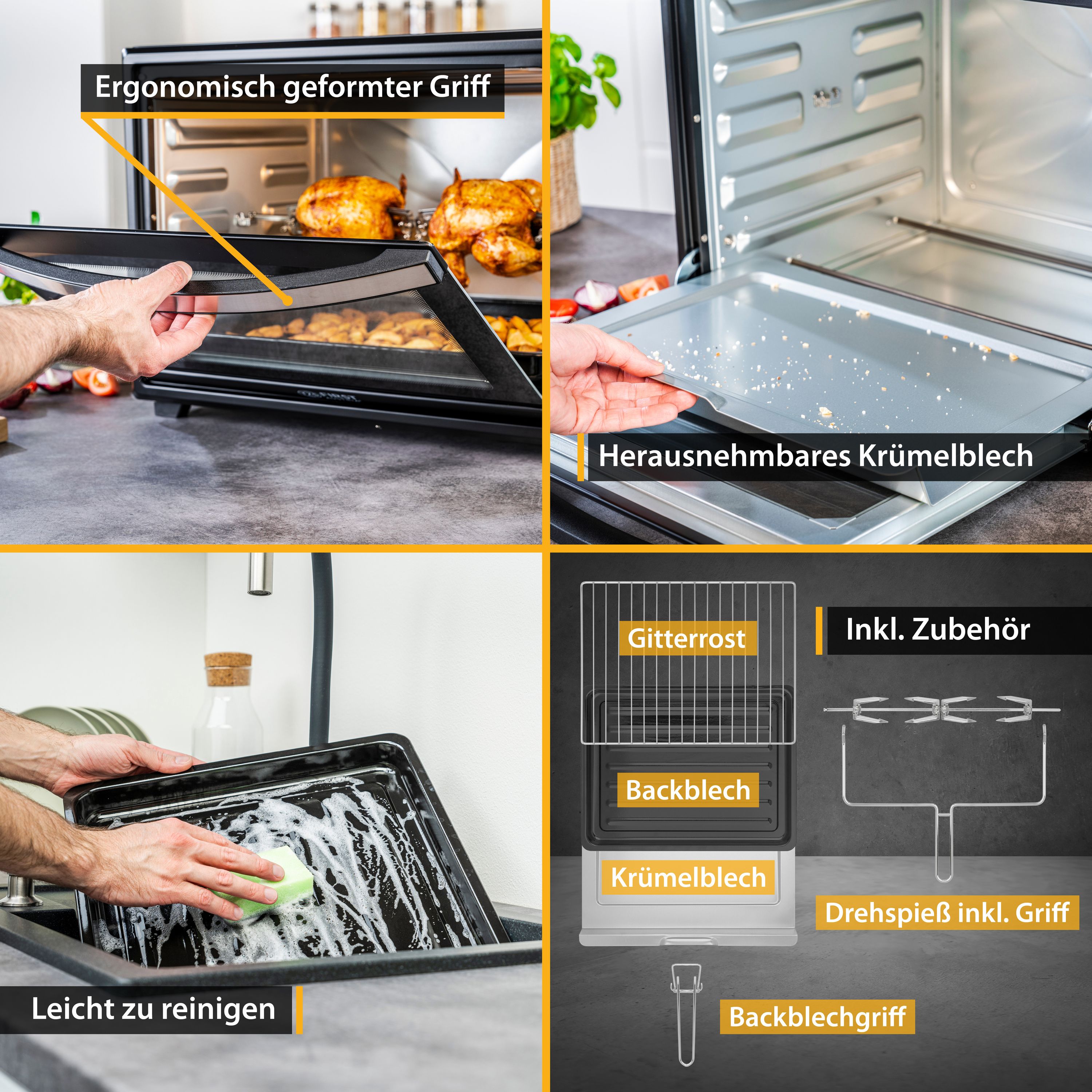 Minibackofen | 60L | 2000 Watt | Rotisserie | Umluft