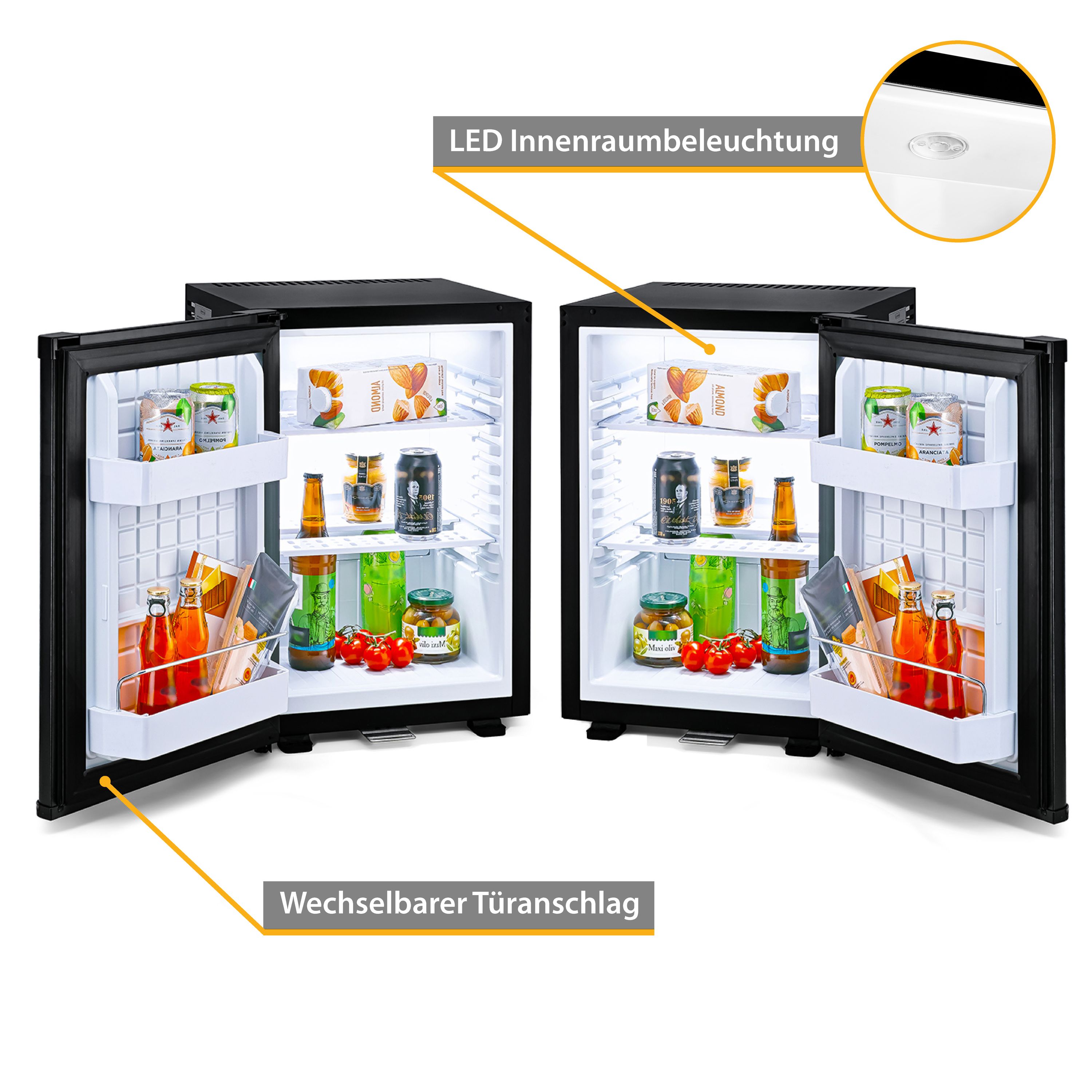 Absolut lautlos dank Peltier-Kühltechnik: Dieser schlichte Minikühlschrank mit stromsparender LED-Innenbeleuchtung und schmutzunempfindlicher Oberfläche ist ein stiller Alltagshelfer. Mit einer Höhe von nur 56,5 cm eignet er sich perfekt zum Aufstellen in kleineren Räumen (Schlafzimmer, kleine Wohnungen, Studenten Zimmer, Büro, Hotel Zimmer, Ferienwohnung, Camping).