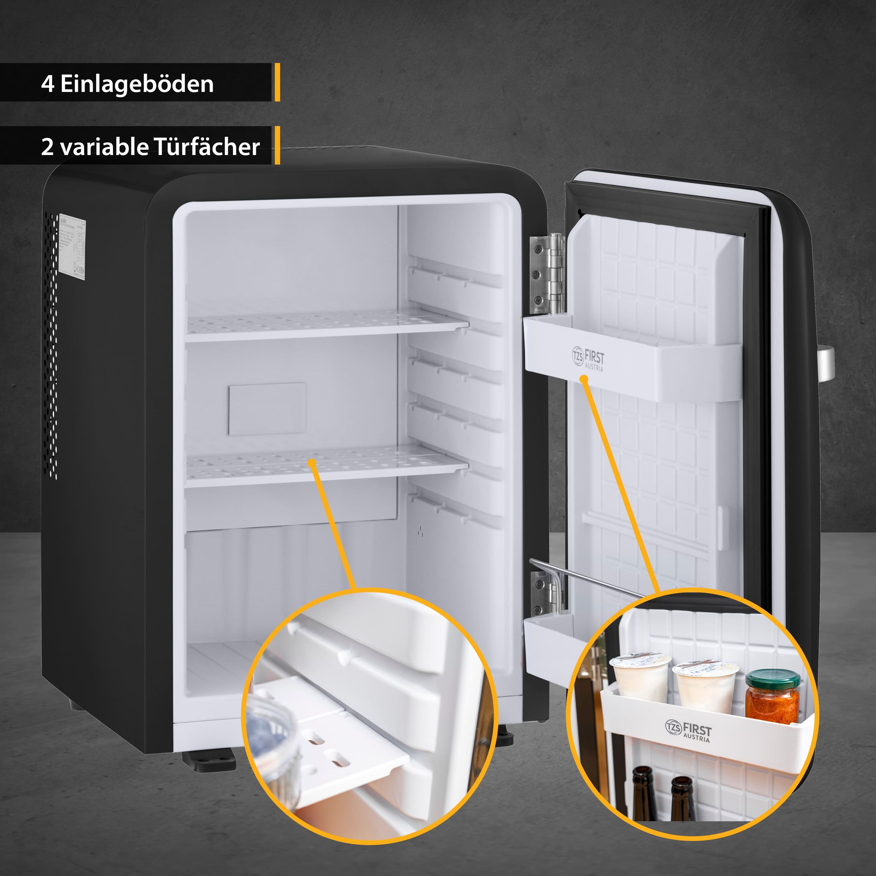 1x Minikühlschrank, 2x Türfächer, 4x Kunststoff Einlageböden von TZS First Austria