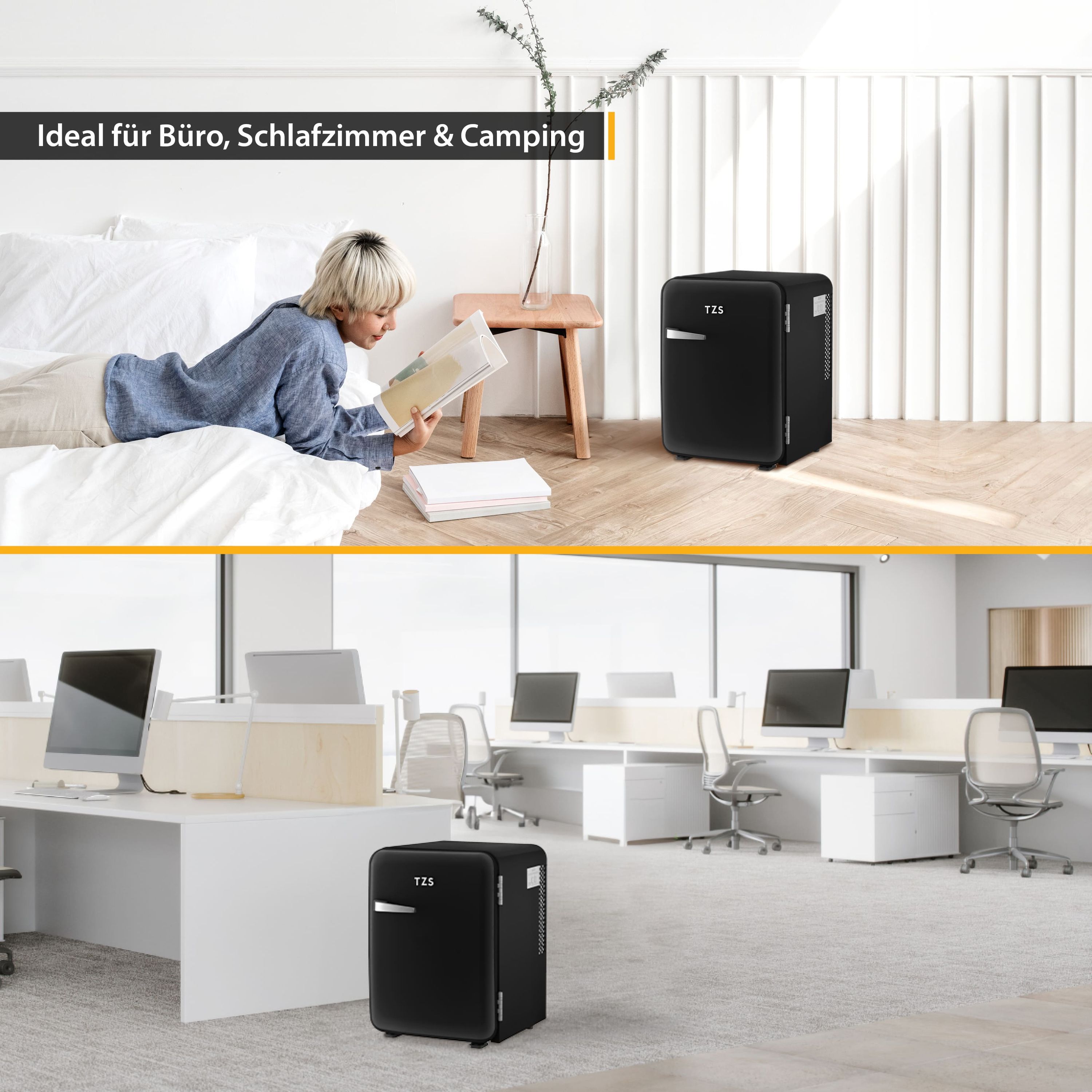In Räumen wie Büros, Wohnmobilen, Hotels und Studentenwohnheimen erweist sich der Minikühlschrank als cooler Begleiter. Mit einem Fassungsvermögen von 40 Litern (34 Liter netto) bietet er ausreichend Platz. Dank seines thermoelektrischen Kühlsystems hält er eine konstante Temperatur von 6 bis 8 Grad Celsius bei Umgebungstemperaturen von 23 bis 25 Grad Celsius aufrecht. Die Kühlleistung ist einstellbar, sodass Sie die Temperatur nach Bedarf anpassen können.