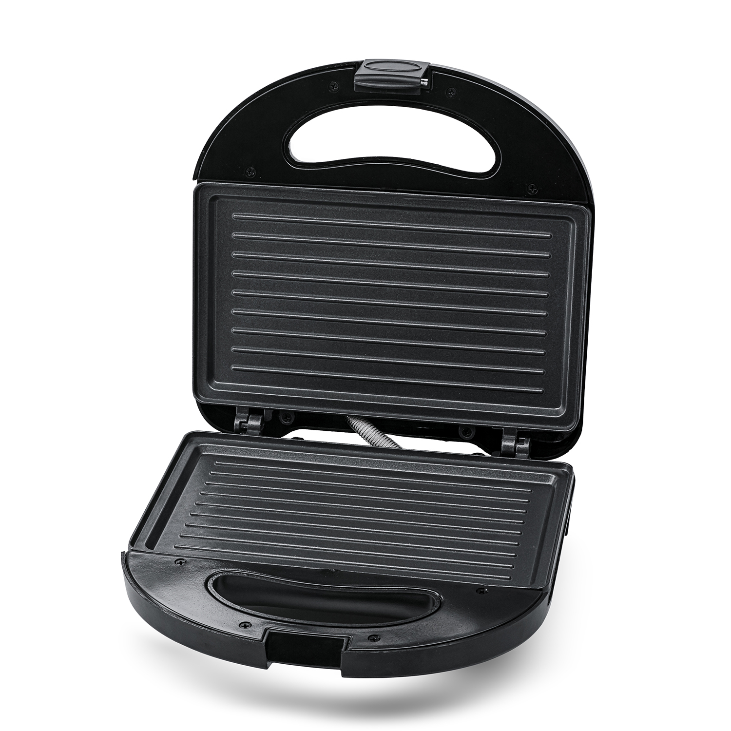 Ein Sandwich ist nie genug. Wie gut, dass dieser Sandwichmaker Platz für zwei bietet. Knuspriger Frühstückstoast, üppig belegtes Sandwich oder pikantes Panini – im kompakten Sandwich Maker für Toasts in Standardgröße gelingen die herrlichsten Kreationen. Auch Hamburger oder Würstel lassen sich zwischen den Platten herrlich grillen. Dank widerstandsfähiger Antihaftbeschichtung hinterlässt nicht einmal zerflossener Käse Rückstände auf den Platten. Entsprechend schnell und leicht ist der kompakte Kontaktgrill zu reinigen. Inklusive Edelstahlverblendung, Kontrollleuchte und praktischem Sperrgriff.