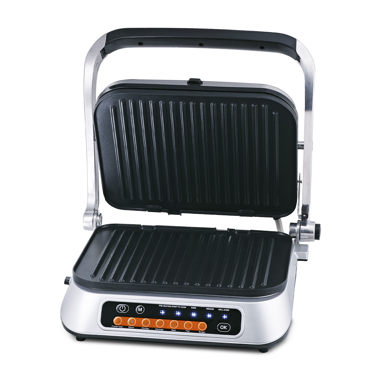 Die große Fläche kann durch die 180-Grad-Öffnung erweitert werden. Abnehmbare, antihaftbeschichtete Platten erleichtern die Reinigung erheblich. Mit ein paar Tüchern ist der Grill also schnell für den nächsten Gebrauch bereit! Der digitale Kontaktgrill mit automatischer Dickenmessung kann auch als normaler Kontaktgrill für Toast, Gemüse, gegrillten Käse und vieles mehr verwendet werden.
